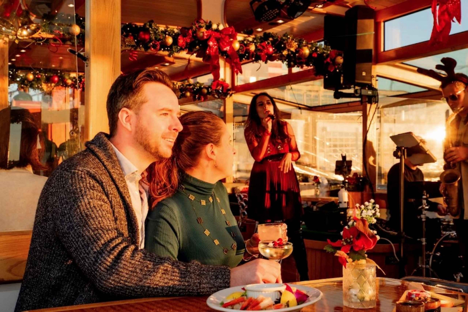 Montez à bord d'un luxueux yacht classique décoré pour les fêtes et partez pour une croisière nocturne d'une heure et demie dans le port de Boston. Écoutez des classiques des fêtes de fin d'année et plongez dans l'esprit des fêtes avec vos amis et votre famille. Installez-vous confortablement et profitez de la vue magnifique sur Boston depuis le salon chauffé d'un yacht de la Nouvelle-Angleterre datant des années 1920. Des airs de Noël seront joués tout au long de la croisière. Profitez de vues panoramiques époustouflantes de l'horizon de Boston avec des sites emblématiques tels que le monument de Bunker Hill, l'USS Constitution et la tour Marriott Custom House.